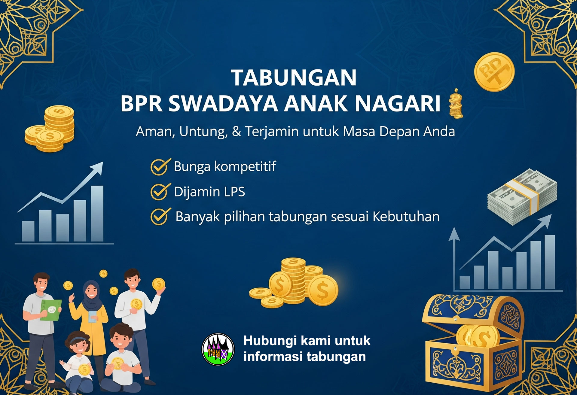 Dengan semangat pelayanan dan kepedulian, kami menghadirkan berbagai produk dan layanan perbankan yang mudah diakses, aman, serta memberikan manfaat nyata bagi nasabah. Melalui kegiatan usaha yang kami jalankan, PT BPR Swadaya Anak Nagari terus berupaya menjadi motor penggerak ekonomi kerakyatan, menciptakan peluang, dan mendukung terciptanya kehidupan masyarakat yang lebih sejahtera.